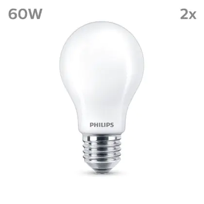 Beschrijving Voordeelpak 2x Philips Lamp LED E27 Peer Mat 7W 806lm - 827 Zeer Warm Wit