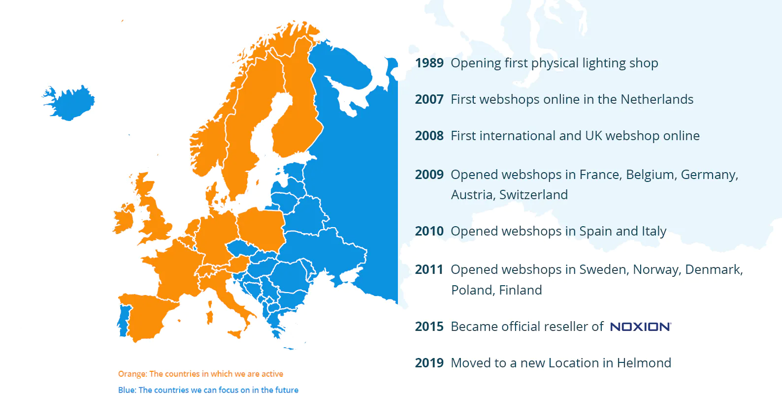 Ons kantoor is gevestigd vlakbij Eindhoven. Dit is dé lichtstad en locatie van vooraanstaande bedrijven zoals Noxion en Philips: de lichtfabrikant die Eindhoven op de kaart heeft gezet. In een paar jaar zijn we gegroeid van 25 werknemers tot meer dan 200 met vestigingen in Nederland, Duitsland, Frankrijk en Taiwan.